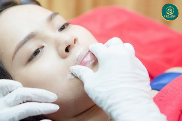 Làm sạch và gây tê: Làm sạch môi và thoa kem gây tê để giảm cảm giác khó chịu.