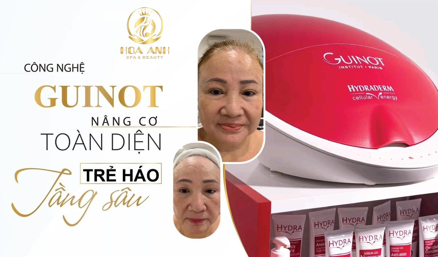 Sản phẩm chăm sóc da kết hợp: Guinot thường cung cấp sản phẩm chăm sóc da sau liệu pháp để duy trì và nâng cao kết quả, giúp da bạn luôn trong tình trạng tốt nhất.
