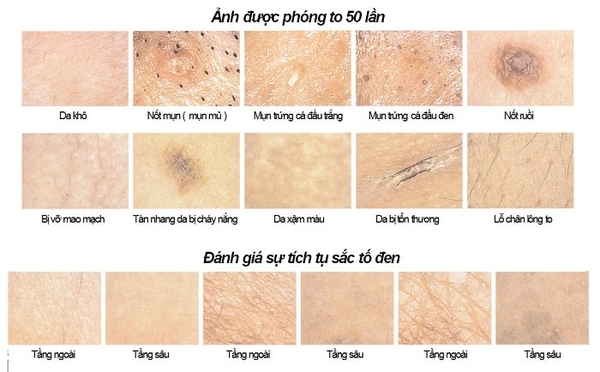 Dựa vào sắc tố và cấu trúc da được tìm thấy khi soi da, bác sĩ phân biệt người bệnh đang mắc bệnh da cụ thể.